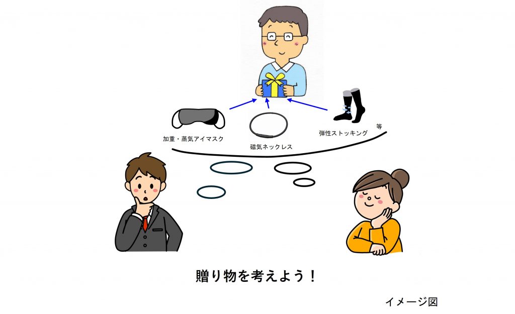肩こりの要因は様々です。お父さんの仕事環境や家での生活スタイルを思い浮かべながら、最適なアイテムを選んでください。どのアイテムであってもあなたが真剣に悩み選んだものであれば、きっと喜ばれるはずです。