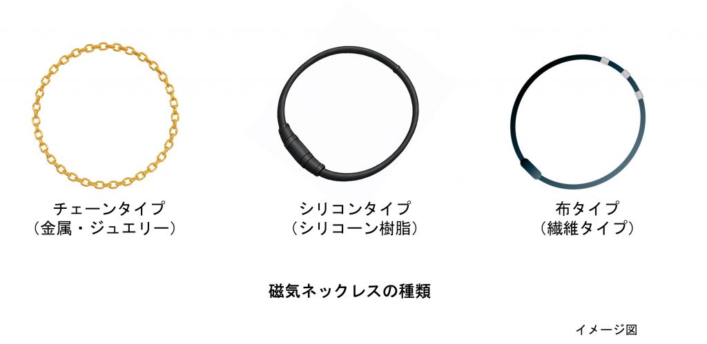磁気ネックレスの種類 金属・シリコン・布、どれが最適? あなたにあった選び方