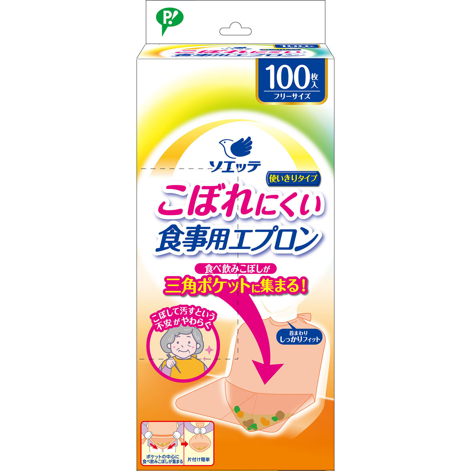 こぼれにくい食事用エプロン使いきりタイプ